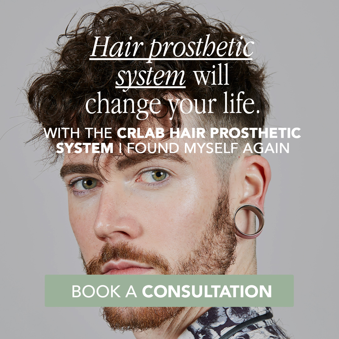 The CRLAB hair prosthetic system is your non-invasive solution to hair loss. Particularly if surgery or medical treatment isn’t for you. Perhaps you’re suffering from relapsing alopecia areata or scarring alopecia. You’ve undergone radiotherapy. Or you’re affected by hair thinning or other hair loss. The prosthetic system is highly personalized to you. And it’s completely integrated with your scalp and hair. Whether you have some hair or none at all. This system has been created for you from the culmination of many years of research, craftmanship and technological innovation.